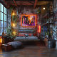 Explore the vibrant urban life with "City Lights and Shadows," a work that captures the energy and dynamism of a nighttime metropolis wrapped in orange and purple tones. This metropolitan graffiti highlights illuminated skyscrapers and graffiti walls that tell stories of rebellion and street art. Perfect for lovers of urban art and lively nightlife.