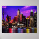 A pastiche of the glamour of three of the world’s great cities under a night sky, with their muticoloured lights reflected in a foreground of water. Shanghai, New York and Dallas are amalgamated in this night scene against a choice of several different dramatic sunsets. Choose your own night-sky or sunset or customize the poster with your own image. Serene starlit skies are available as are dramatic cloud scenes at close of day. The same city skyline is available from distinctive designs with a variety of different sunsets so choose the sky to suit your taste or your requirements for an office space, reception hall or make it personal for your home. It will look well in a bedroom, living room or even in the kitchen.
