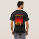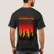 "Our God Is A Consuming Fire..." This black t-shirt bears these words and an image of a city skyline silhouetted against the glow of fire with burning embers raining down on the city.