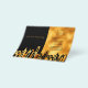 An elegant and minimalist moving annoucement flyer for a city business, company, real estate agents, caretakers, janitors. Black and faux gold with a city skyline. Personalize and add your business, company logo, name, address and contact information on the front.