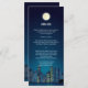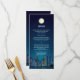 This is a sophisticated menu rack card for those having a special event, private ceremony or elopement in any urban city. It features a city skyline on a starry night with the moon rising above a customized menu. The couple's names stand on the reverse with the event date underneath. Available with matching products.