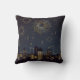 Cityscape outline with fireworks throw pillow