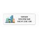 Étiquette de l'adresse de retour de l'immeuble cityscape skyline. Modèle d'affaires de location de biens immobiliers urbains. Modèle moderne avec dessin de la ville haute en couleurs. Idéal pour le marché de location, architecte, constructeurs, agents immobiliers, courtiers, agence de sous-traitance, expat logement, partage de bureau, espaces de travail, commerce, centre commercial et bien plus encore.