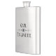 The product is a good size and came exactly as it was pictured. The lid is not attached to the flask, which could be dangerous on drunken nights... The print came out surprisingly well and looks very sharp. Would definitely recommend.