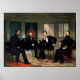 The Peacemakers, by George P.A. Healy, depicts the historic meeting of the Union High Command during The American Civil War. Featured in the painting are, General William Tecumseh Sherman, General Ulysses S. Grant, President Abraham Lincoln, and Rear Admiral David Dixon Porter. The strategy session took place on Grant's private dispatch boat, The River Queen.