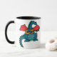 Hilarious cute cartoon blue dragon playing the guitar mug or travel mug design. He's funny and full of personality and you can add custom text when ordering. Great gift idea.