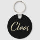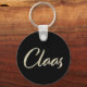Ein sehr schöner edler personalisierter Button Schlüsselanhänger im whitegold Lettering Look auf schwarz für Claas.