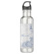 Gardez une boisson rafraîchissante d'eau cool avec vous avec une bouteille d'eau personnalisée Peacock bleu clair. La conception de bouteilles d'eau comprend un paon bleu clair éclatant, une vigne en feuilles blanches molles contre un arrière - plan gris clair grunge avec un espace à personnaliser avec votre nom. Autres cadeaux disponibles avec ce design ainsi qu'une variété de couleurs.