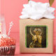 Beautiful woman with flowers in her hair and fingertips on her lips, wrapped in starry fabric, with bare shoulders, standing in the glow of a crescent moon. 1902 Art Nouveau lithograph by Czech artist, Alphonse Mucha (1860-1939), entitled, "Clair de Lune", from "Les Etoiles".