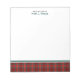 Personalized note pad with a border of the family tartan of Clan Ainslie, a traditional bright red and forest green Scottish plaid pattern.