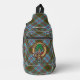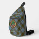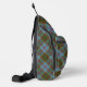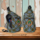Clan Anderson crest badge surrounded by a strap and buckle over tartan background. Custom text.