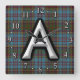 Clan Anderson Letter A Monogram Tartan Square Wall Clock