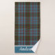 Élégant ensemble de serviette de bain en plaid réalisé dans le coloré motif en plaid Anderson. Une bande bleue, à l'une des extrémités de la serviette de bain, a du texte blanc personnalisé prêt à être personnalisé pour répondre à vos besoins.
