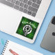 Stylish shield shaped patch features Scottish Clan Arthur (MacArthur / Artair ) crest badge and customizable text on tartan background