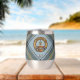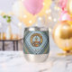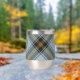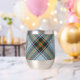 Clan Bell écusson badge entouré d'une sangle et boucle sur l'arrière - plan tartan. Texte personnalisé des deux côtés.