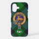 Clan Blair crest badge surrounded by a strap and buckle over tartan background. Custom text.