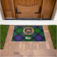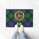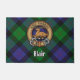 Clan Blair crest badge surrounded by a strap and buckle over tartan background. Custom text.