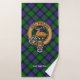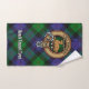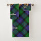 Clan Blair insigne crête entouré d'une sangle et boucle sur l'arrière - plan tartan. Texte personnalisé sur chaque serviette.