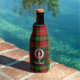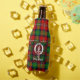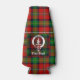 Stylish bottle cooler featuring Scottish Clan Boyd modern tartan background with crest badge and text overlay