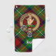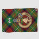 Clan Boyd crest badge surrounded by a strap and buckle over tartan background. Custom text.