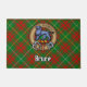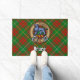 Clan Bruce crest badge surrounded by a strap and buckle over hunting tartan background. Custom text.
