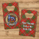 Clan Bruce crest badge surrounded by a strap and buckle over tartan background. Custom text on both sides.