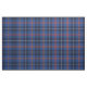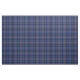 Fabric in the family tartan for Clan Bryson, a traditional Scottish plaid pattern from 1988 in dark blue, royal blue, and green, with gray and bright red accents. Pattern repeats every 4". Special order smaller or larger scale via https://plaidwerx.com/contact.htm