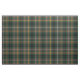 Fabric in the hunting tartan for Clan Buchanan, a traditional Scottish plaid pattern from around 1850 in dark green, brown, and black, with yellow and light blue accents. Pattern repeats every 4". Special order smaller or larger scale via https://plaidwerx.com/contact.htm