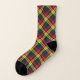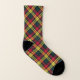 Chaussettes avec tartan familial pour Clan Buchanan et ses sépts, y compris Dow et Lenny. motif écossais vintage en plaid datant de 1850, dans jaune vif, rouge et vert forêt, avec des accents blanc et noir.