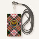 Clan Carnegie crest badge surrounded by a strap and buckle over dress tartan background. Custom text.