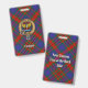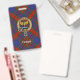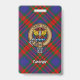 Clan Carnegie crest badge surrounded by a strap and buckle over tartan background. Custom text.