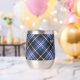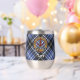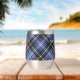 Clan Clark badge crête entouré d'une sangle et boucle sur l'arrière - plan tartan. Texte personnalisé des deux côtés.