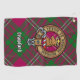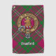 Clan Crawford crest badge surrounded by a strap and buckle over tartan background. Custom text.