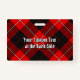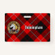 Clan Cunningham crest badge surrounded by a strap and buckle over tartan background. Custom text on both sides.
