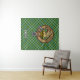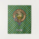 Clan Currie lion crest badge surrounded by a strap and buckle over tartan background. Custom text.