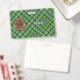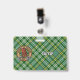 Clan Currie rooster crest badge surrounded by a strap and buckle over tartan background. Custom text on both sides.