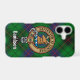 Clan Davidson crest badge surrounded by a strap and buckle over tartan background. Custom text.