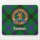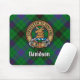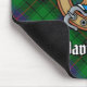 Clan Davidson crest badge surrounded by a strap and buckle over tartan background. Custom text.