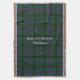 Colourful custom fringe end throw blanket made with graphics of the green, blue, red, and black traditional Scottish clan Davidson tartan plaid pattern. White old world style text can be personalized to read what you want. Lovely gift idea for anyone.