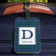 Luggage tag with the Clan Douglas tartan, dated to 1819. Traditional Scottish plaid pattern in bright modern shades of navy blue and forest green with bright blue, black and white highlights. Personalize with your initial and surname on a light coloured plate for easy legibility.