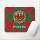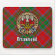 Clan Drummond crest badge surrounded by a strap and buckle over tartan background. Custom text.