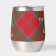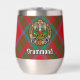 Clan Drummond crête badge entouré d'une sangle et boucle sur l'arrière - plan tartan. Texte personnalisé des deux côtés.
