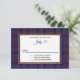 Stylish plaid wedding response card done in the classic regency blue, black, red and yellow Scottish Clan Dondonald pattern. A white text area, with graphics of a thin gold frame has custom text ready to personalize for your special day. Matching products are available.