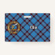 Clan Elliot crest badge surrounded by a strap and buckle over ancient tartan background. Custom text on both sides.