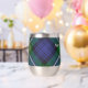 Clan Forbes crest badge surrounded by a strap and buckle over tartan background. Custom text on both sides.