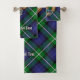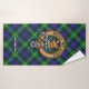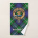 Clan Forbes crest badge surrounded by a strap and buckle over tartan background. Custom text on each towel.