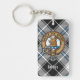 Clan Forbes crête badge entouré d'une sangle et boucle sur l'arrière - plan écossais habillé. Texte personnalisé des deux côtés.