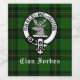 Clan Forbes tartan pattern background with crest badge and customizable text overlay