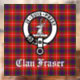 Stylish window cling features Scottish Clan Fraser Crest badge and customizable text on tartan background