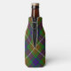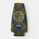 Clan Fraser crest badge surrounded by a strap and buckle over hunting tartan background. Custom text.